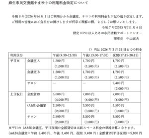 2026年4月1日より麻生市民交流館やまゆりの利用料金を改定します